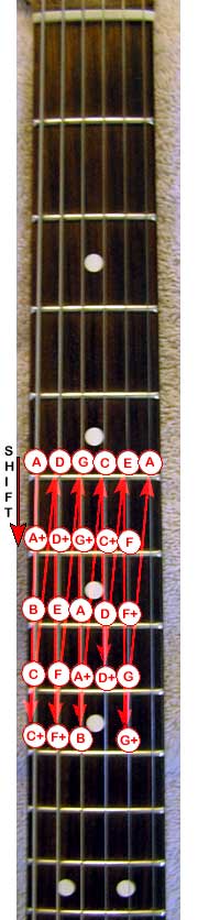 This pattern of notes would be the same no matter where you start on the neck. Pretty simple eh?